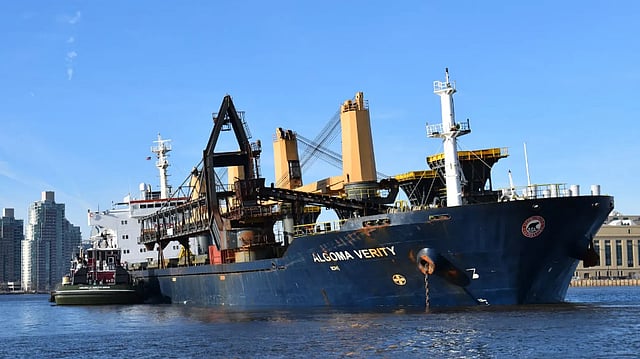 The bulk carrier Algoma Verity has since been moored at Tioga Marine Terminal approximately two miles (3.2 kilometres) north of the Benjamin Franklin Bridge.