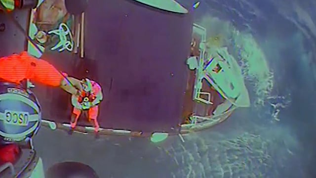 Watchstanders then directed the launch of an MH-60 Jayhawk helicopter aircrew and an HC-130 Super Hercules aircrew from Coast Guard Air Station Kodiak. At approximately 19:42, the helicopter aircrew arrived on scene and hoisted all four individuals from the vessel.