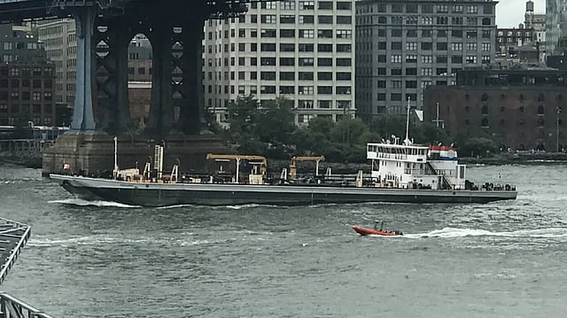 The vessel was carrying raw sewage at the time, though the DEP said that the incident has not impacted operations at the West Harlem treatment plant.