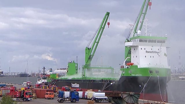 Due to the smoke billowing from the ship, the municipal government of Merksem just outside the port had warned residents to keep their doors and windows closed to prevent discomfort.