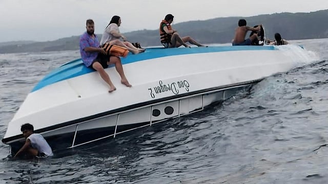 The tour boat Sea Dragon 2 was en route to Nusa Penida Island near Bali when it was struck by large waves, causing it to overturn with only the bottom of its hull remaining above the surface, on the morning (local time) of Friday.