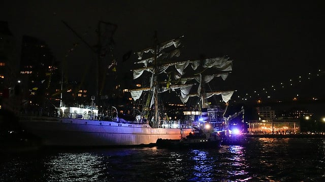 Two people aboard the ship - a cadet and a sailor - were killed, and around 20 were injured, two of them critically.
