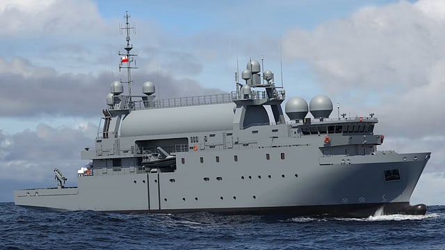 A future signals intelligence (SIGINT) ship ordered by the Polish Navy was launched during a ceremony in Gdynia on Tuesday, July 1.