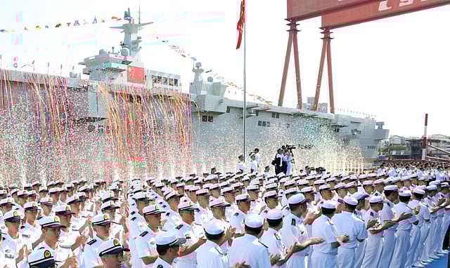 Hudong-Zhonghua Shipbuilding launched the second Type 075 landing helicopter dock (LHD) that it is building for the People's Liberation Army Navy (PLAN) at its facilities in Shanghai on Wednesday, April 22.