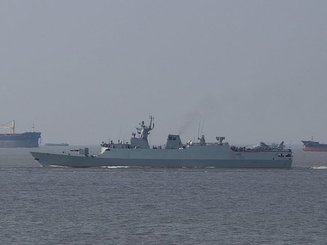 Things started to change with the arrival, in July 2013, of the then brand-new Type 056 corvettes Huizu and Qinzhou. These 1,550-tonne warships have armament which includes YJ-83 anti-shipping cruise missiles, and feature variable depth sonars and a flight deck for a Z-9 helicopter. The warships' capabilities far exceed those required for the maintenance of local maritime security.