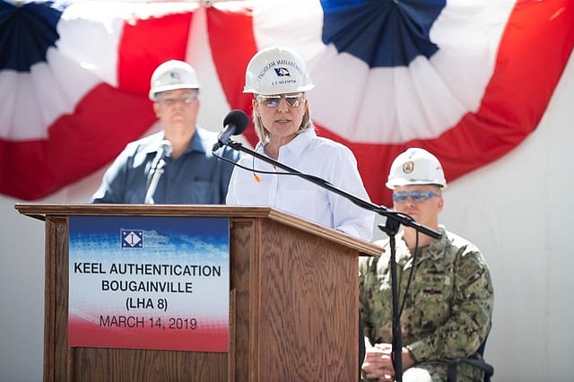 The keel of the America-class amphibious warship Bougainville was authenticated during a ceremony at Huntington Ingalls Industries' (HII) Ingalls Shipbuilding on Thursday, March 14.