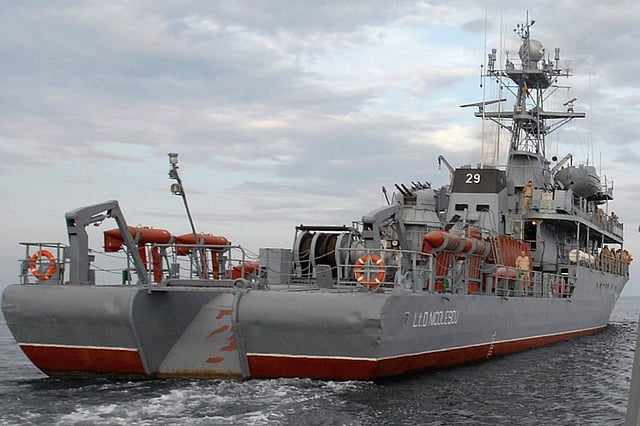 The minesweeper Lt Dimitrie Nicolescu was deployed to an area 20 nautical miles off the coast after the crew of a commercial vessel reported the presence of an unexploded mine floating in the same waters.