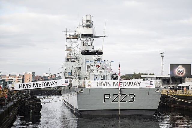 The 2,000-tonne warship HMS Medway was named by Lady Wendy Fallon, wife of UK Defence Secretary Michael Fallon, at BAE's Scotstoun yard on the Clyde.