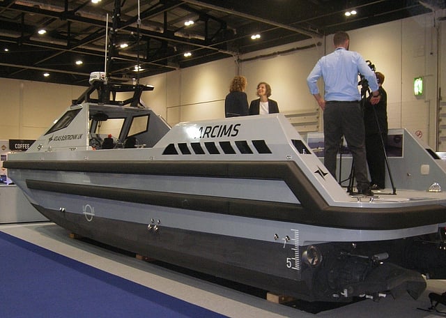 Also strongly represented at the show was prolific manufacturer of, civil and naval, autonomous and remote controlled vessel systems, ASV (Global). This company has supplied leading defence manufacturer and contractor Thales with its C-Sweep unmanned workboat for the company's Halcyon project. This project, which has recently been trialled by the British and French Defence ministries, features a synthetic aperture sonar–equipped array towed by a C-Sweep for mine detection, linked with unmanned underwater vessels for classification, and destruction, of located underwater mines.