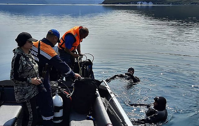 Patrol boat crews of the Kronotsky Nature Reserve in Far East Russia's Kamchatka peninsula responded to a helicopter crash in Kurile Lake on Thursday, August 12.