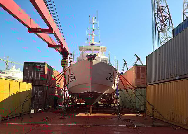 A fast patrol boat built for the Philippine Coast Guard has been loaded by its French builder, OCEA, and is ready for delivery.