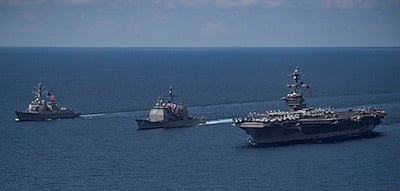 US Navy sources subsequently asserted that another two guided missile destroyers, Sterett and Dewey were scheduled to join the CBG.