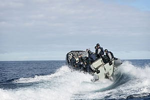 RHIBs are used widely across the RAN to transfer personnel. In this instance, the RHIB was capable of carrying up to twenty people.