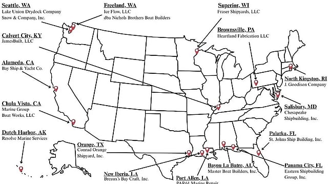 The US Maritime Administration (MARAD) has awarded $8.75 million in grants to seventeen small shipyards in twelve states, US Transportation Secretary Sean Duffy announced on July 22.
