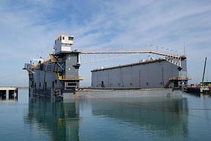 With fully automated ballast and manoeuvring systems the dock has the capacity to lift 12,000-tonne vessels, such as Collins-class submarines, and commercial vessels out of the water for service and maintenance work.