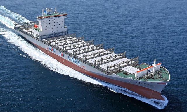 The DNV GL-classed Wan Hai 325 has an LOA of 203.5 metres, a beam of 34.8 metres, a draught of 11.5 metres, a deadweight of 37,160 tonnes, and capacity for 3,055 TEUs.