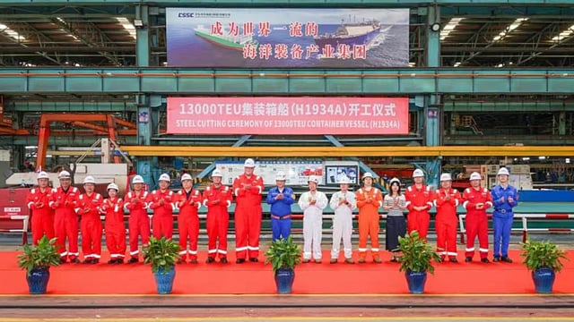 China's Hudong-Zhonghua Shipbuilding has begun construction of the second of five 13,000TEU container vessels ordered by Singapore-based shipping company Pacific International Lines (PIL).