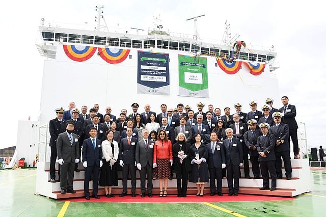 Italian shipowner the Grimaldi Group took delivery of a new Con-Ro vessel at the facilities of HD Hyundai Mipo Dockyard in South Korea on Tuesday, April 23.