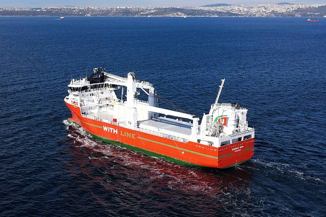 The 86- by 20-metre Oddrun With was designed for flexible and combined shipping of general cargo, refrigerated goods, and container cargo. An efficient unloading system has been installed for the supply of fish feed to salmon farms along the Norwegian coast.