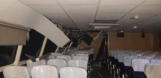The impact tore off FastCat M11's roof as well as some of the passenger seats, resulting in injuries.