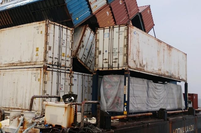 The loss of containers occurred while the barge was being towed to Hilo by the Young Brothers tug Hoku Loa.