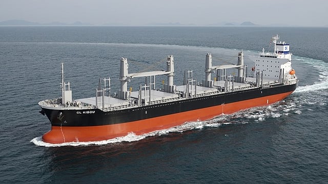 The ocean-going bulk carrier features a double hull hold construction of box shape with topside tanks. This specific design allows the ship to transport a wide variety of materials including grain, coal, ore, cement, steel coil, and long size steel.