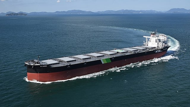 The vessel features seven cargo holds equipped with top-side and hopper tanks, designed to carry high-density cargoes such as iron ore.