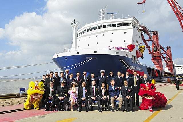 Named Industrial Fusion, it is the second 13,000-tonne heavy-lift crane vessel built by Hudong-Zhonghua for China Shipbuilding (Hong Kong) Shipping Leasing.