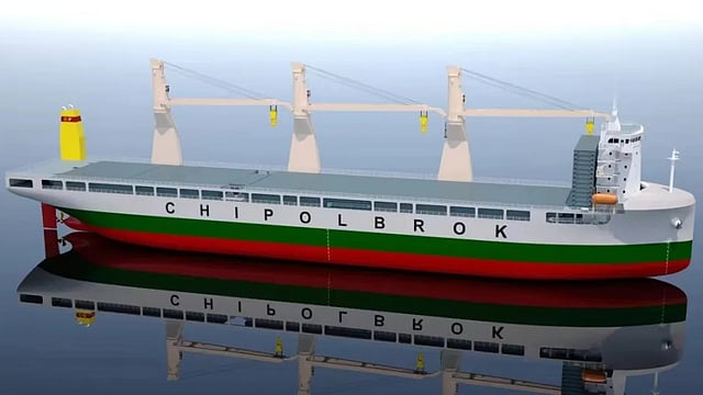 Each vessel will also have three 350-ton cranes, an open deck, and two cargo holds that measure 78.6 metres long. Movable second decks will permit the transport of project cargo and other large loads.