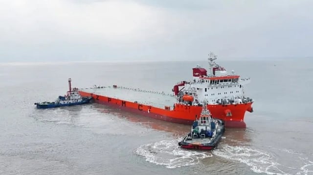 Chinese shipbuilder Shanghai Zhenhua Heavy Industries (ZPMC) has completed construction of a new shallow-draught, heavy-lift vessel for use by its own ocean transport arm.