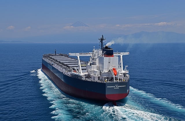 The 209,000DWT Friedrich Oldendorff has an LOA of 299.99 metres, a beam of 50 metres, a draught of 18.4 metres, and accommodations for 25 crew.