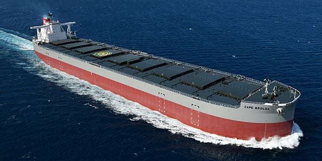 The NK-classed Cape Brolga has a length of 299.99 metres, a beam of 50 metres, a draught of 18.4 metres, and a deadweight of 211,982 tonnes. One MAN B&W 7S65ME-C8.5-HSPSCR diesel engine delivers a speed of 14.3 knots.