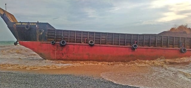 Eyewitnesses said the landing craft Cebu Great Ocean ended up on the shores of the town of Malimono at 15:38 local time on Monday.