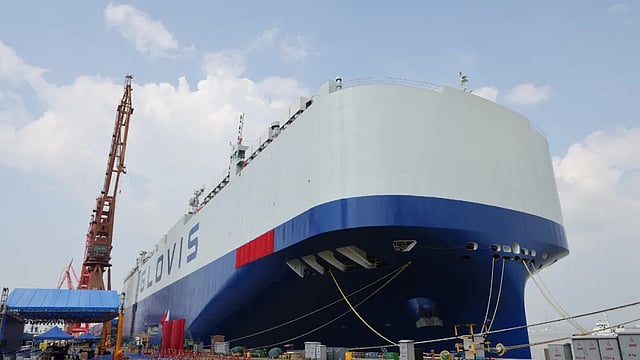 China's Guangzhou Shipyard International (GSI) handed over a new pure car and truck carrier (PCTC) to South Korean shipping company HMM during a ceremony on Thursday, October 16.