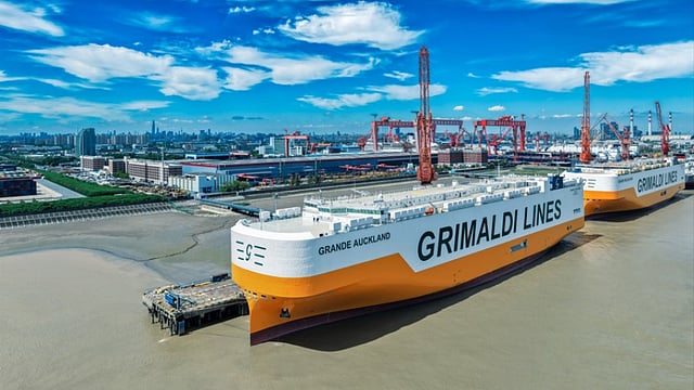 Grande Auckland is the second in a new series of seven PCTCs built for Grimaldi by China's Shanghai Waigaoqiao Shipbuilding. Grande Tianjin, the first ship in the series, was delivered early last month.