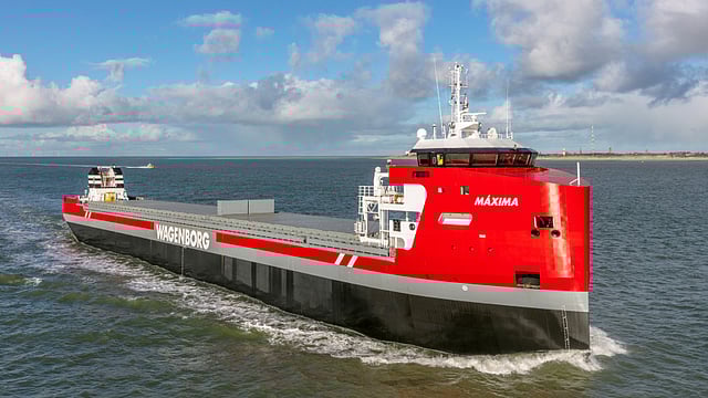 The sister vessel to the 2017-built Egbert Wagenborg will be formally named Máxima in honour of Queen Máxima of the Netherlands. It has a length of 149 metres and a 17,000-cubic-metre hold that can accommodate up to 14,000 tonnes.