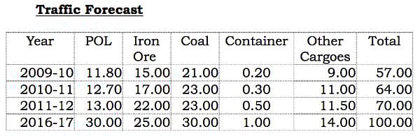 For 2009 to 2010, it is forecast that the port will handle 57 million tonnes of traffic with a growth rate of 23 percent over the corresponding period of the previous year.