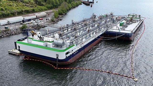 The transloading barge can accommodate up to 24 rail tank-cars while the lightering barge has a capacity of approximately 30,000 barrels of liquid cargo for eventual transfer to ocean-going vessels.