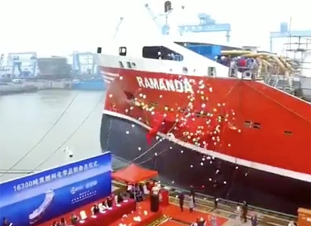 Built at China's Avic Dingheng Shipbuilding, the 16,300DWT Ramanda has a 20,000-cubic-metre cargo capacity.