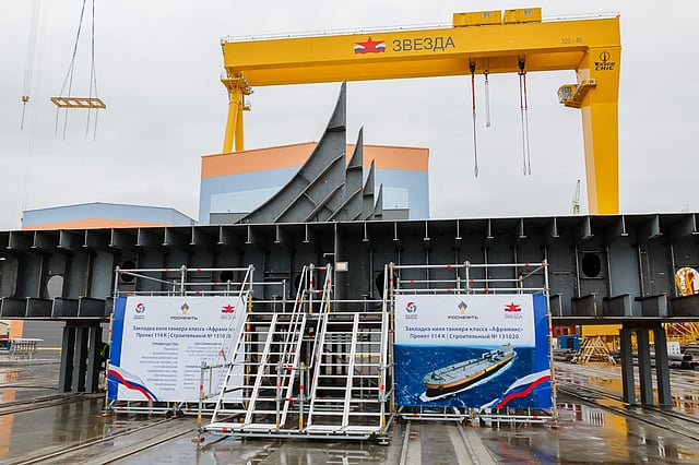 Zvezda Shipbuilding Complex has laid the keel of the second of a planned 10 Aframax tankers ordered by Rosnefteflot.