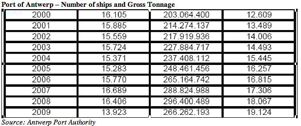 In 2009 the Port of Antwerp handled 157.8 million tonnes of freight, with containers naturally playing a very important role. Last year a total container volume of 87.2 million tonnes was loaded and unloaded. Also during this period 39.5 million tonnes of liquid bulk and 14.7 million tonnes of dry bulk were loaded and unloaded. In the course of 2009, ships brought 10.4 million tonnes of conventional general cargo to and from the port of Antwerp, along with more than 3.2 million tonnes of Ro-Ro freight.
