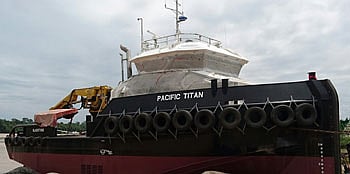 The vessel was designed by ECM in conjunction with local Australian naval architects, and represents the first of type ECM Rhino tug 26-30. 'Pacific Titan' was built at the Hung Seng Shipbuilding (HSS) yard in Sarawak, Malaysia.
