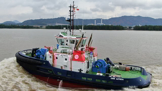 CMM Azteca (pictured) and CMM Mexico belong to a series of tugs designed by Canadian naval architecture firm Robert Allan Ltd (RAL). The tugs have since departed on their delivery voyage, sailing from Hong Kong to Mexico under their own power.