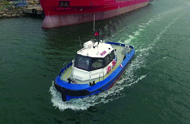 Designed by Tomay Ship Design, the vessel has an LOA of 14.6 metres, a beam of 5.5 metres, a draught of two metres, and two Volvo Penta D13 engines that deliver a bollard pull of 10 tonnes.
