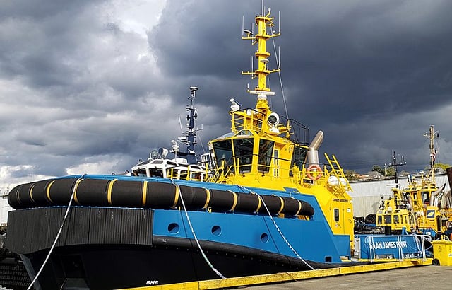 Measuring 23 by 12 metres, the tug has a bollard pull of 70 tonnes thanks to two Caterpillar 3512C IMO Tier III main engines.