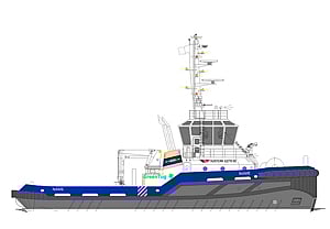 Dutch company Iskes Towage & Salvage has contracted Damen Shipyards Hardinxveld build two ASD 3212 'Green Tug' harbour tugs, designed to reduce emissions by 30 percent.