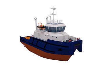 Power for this wide range of applications is to be supplied by a pair of Cummins K38-M main engines each delivering 634kW to Z-drives. Auxiliary power will be provided by two Cummins NTA855-CP200DM5 generators sets each delivering 200kW. The tug has two forward mounted fire monitors.