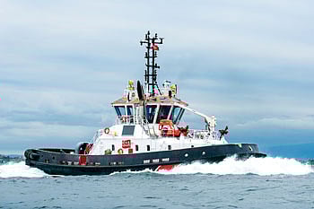 The tug measures 30.25 metres in length with a moulded beam of 13 metres and an overall draft of six metres.