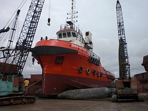 These drive fixed pitch propellers in kort nozzles developing a bollard pull of between 40 and 45 tonnes and free running speed of 12 knots.
