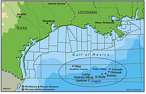 The discovery confirms the Lower Tertiary's potential in this area. The discovery is approximately 400 kilometres south-west of New Orleans, at a water depth of around 2,364 metres. Further exploration activities will define recoverable volumes and its commercial potential.